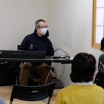 今回は、東北音楽療法プロジェクト えころんの音楽療法士の智田邦徳(ちだ くにのぶ)先生をお迎えして、「音楽療法〜歌と体操のサロン」を楽しく体験しました。