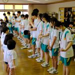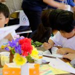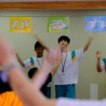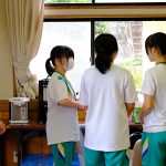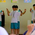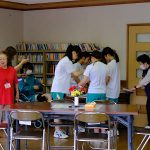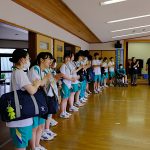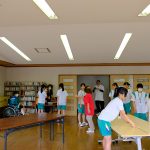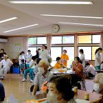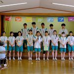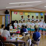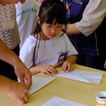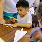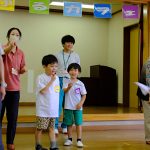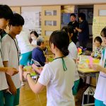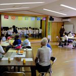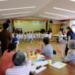 今回は、大平中学3年生の皆さんの全面サポートを受け、平田こども園の園児さんをお迎えして歌とダンスの披露、紙飛行機づくりで楽しい時間を過ごしました。