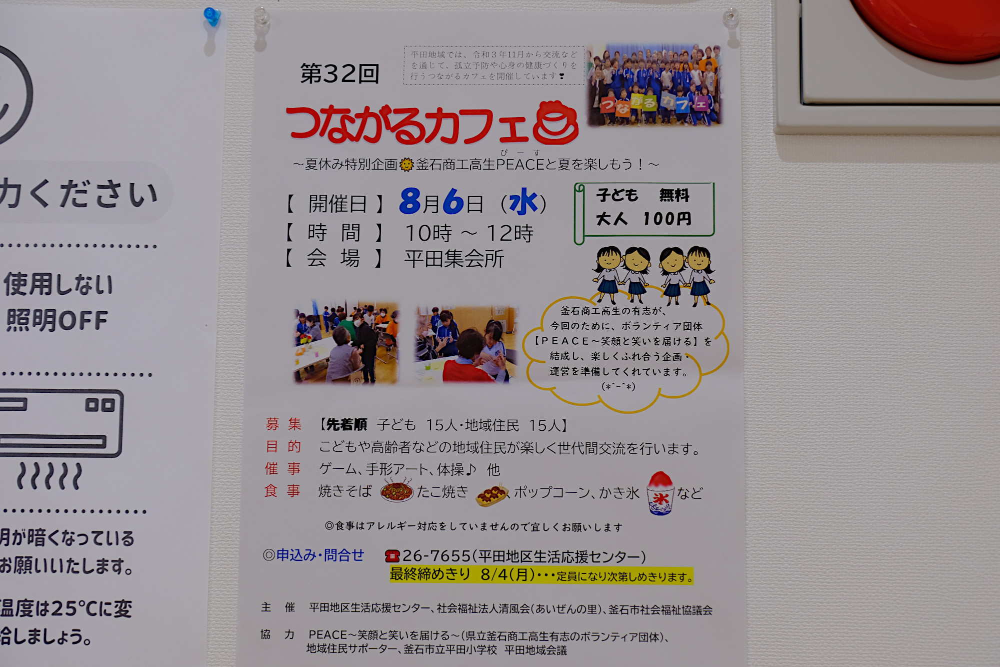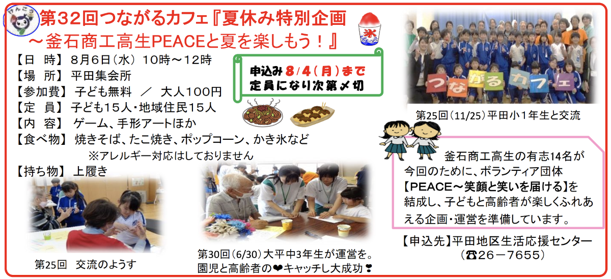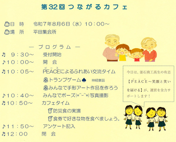 2025年8月6日(水)、平田集会所にて「第32回つながるカフェ」が開催されました。