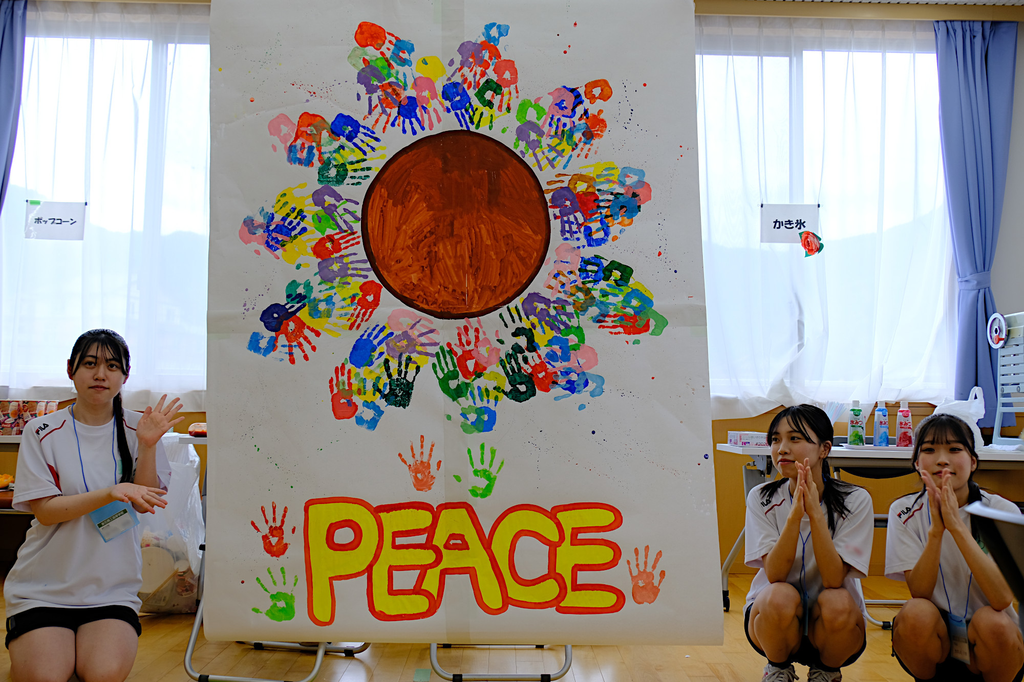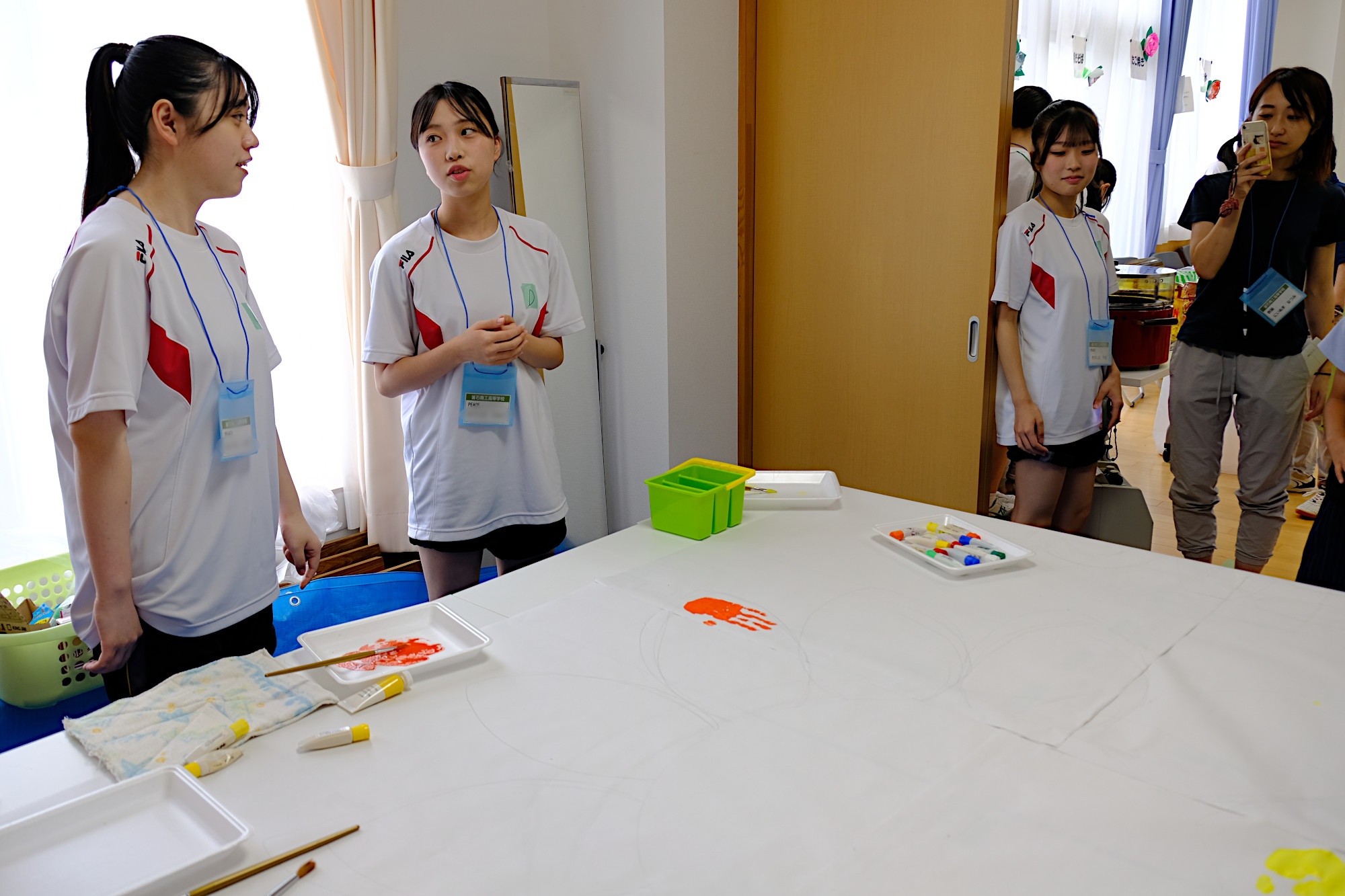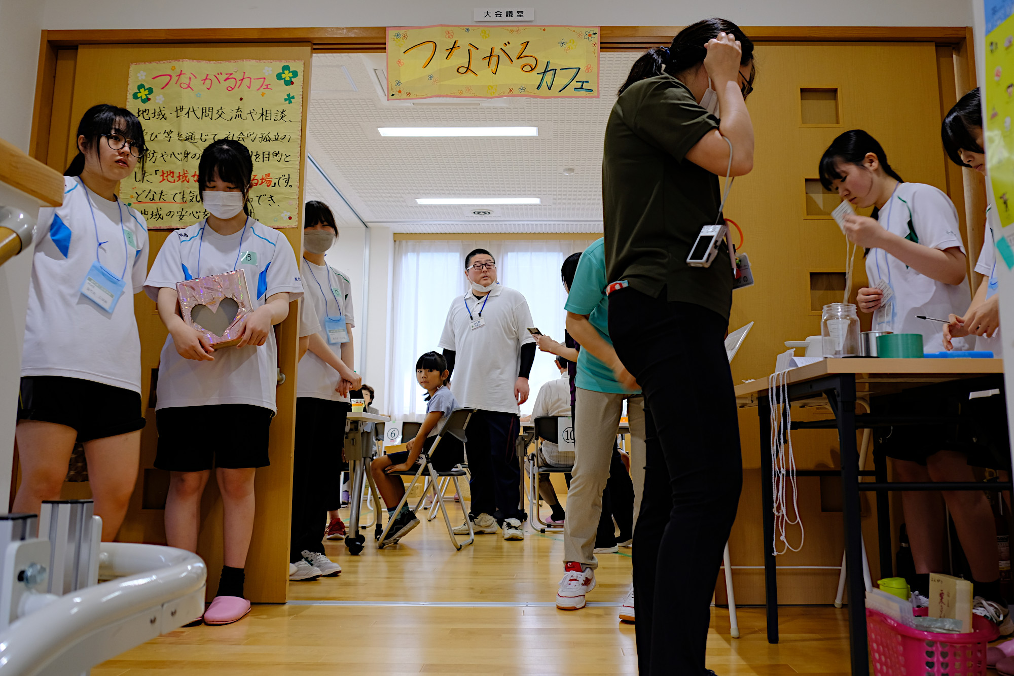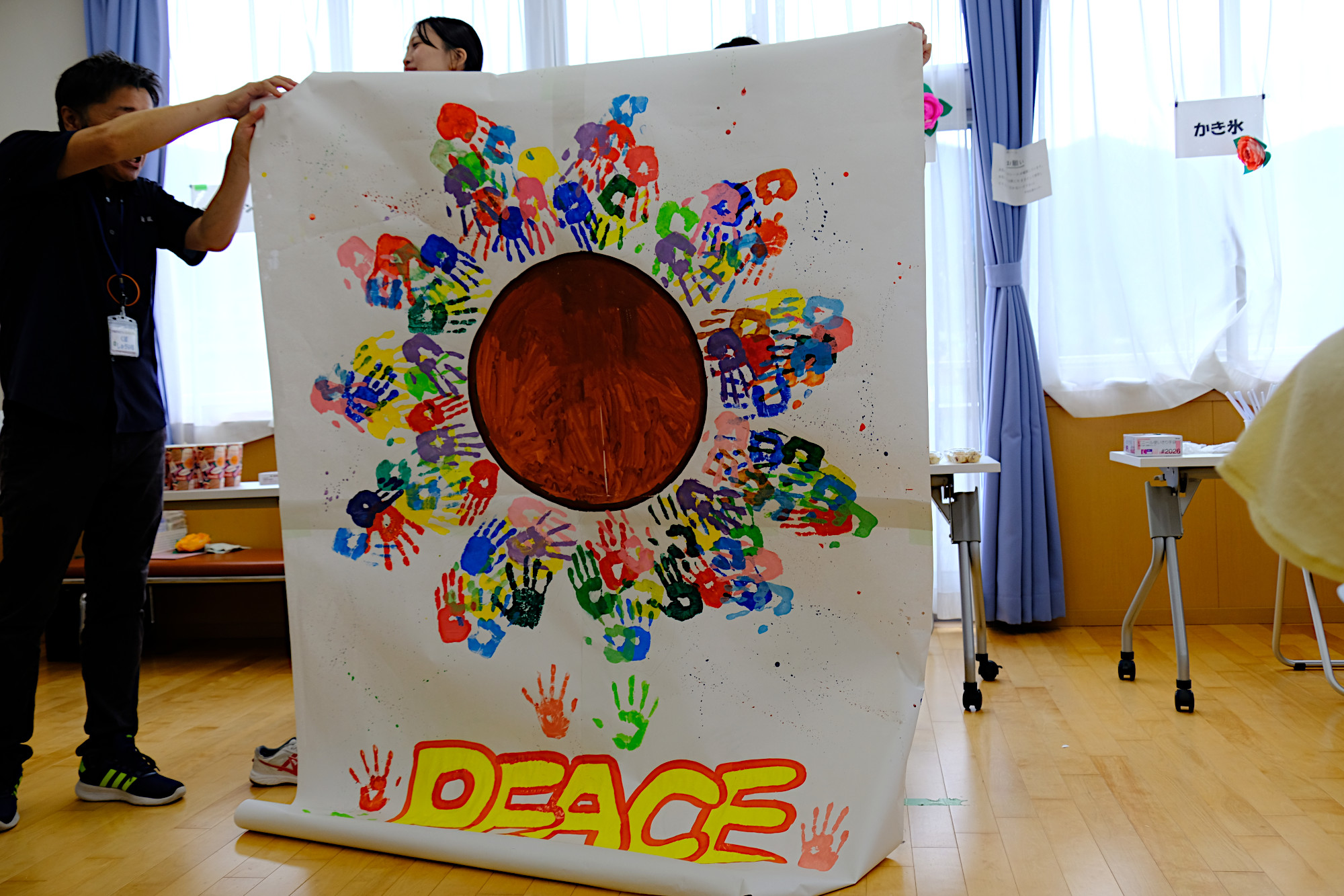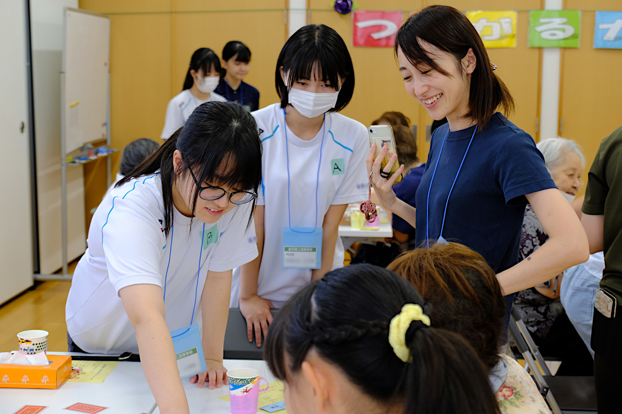 釜石商工高等学校の有志「PEACE 〜 笑顔と笑いを届ける」の皆さんに全面的なサポートをいただき、カフェタイム、アート制作で楽しい時間を過ごしました。