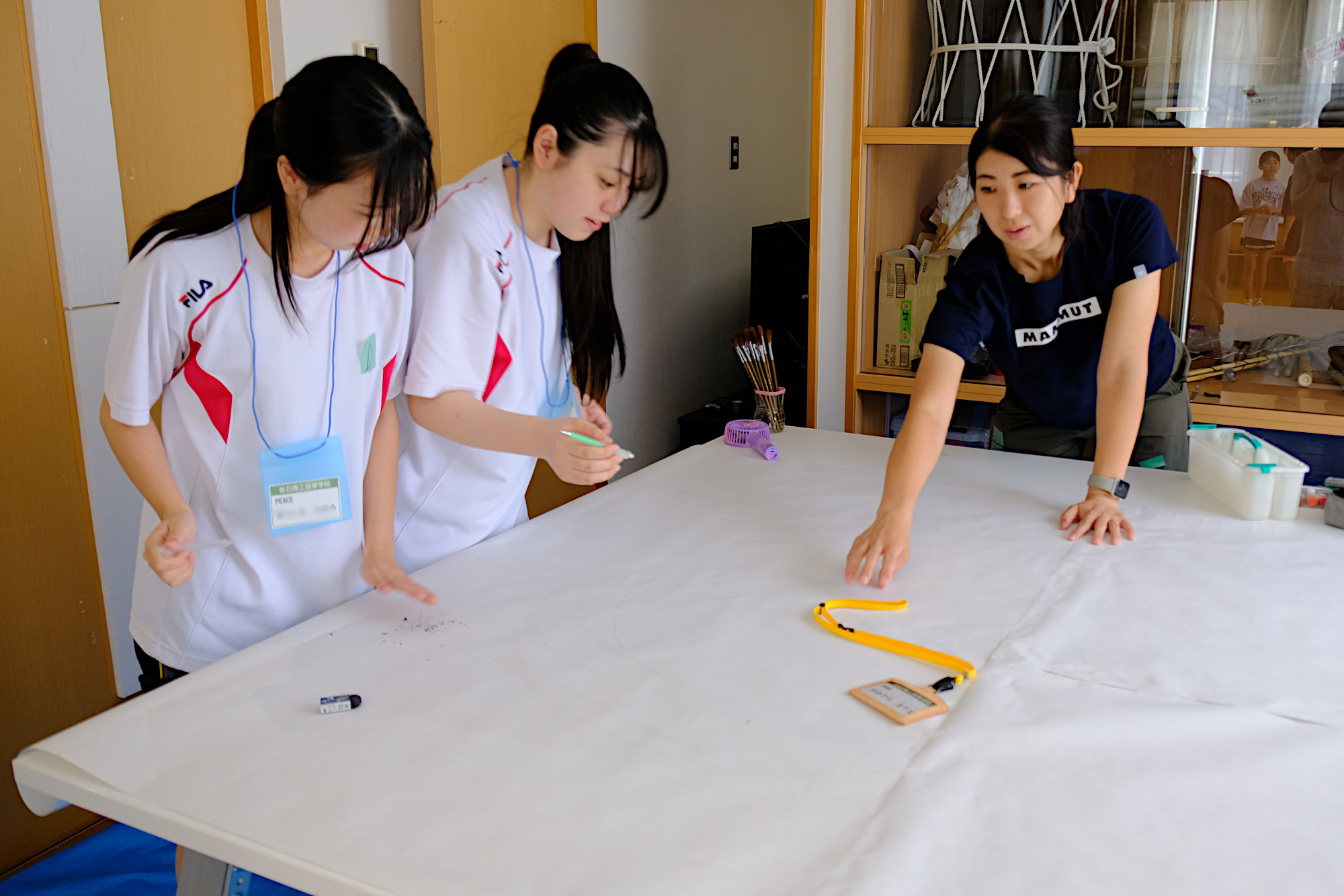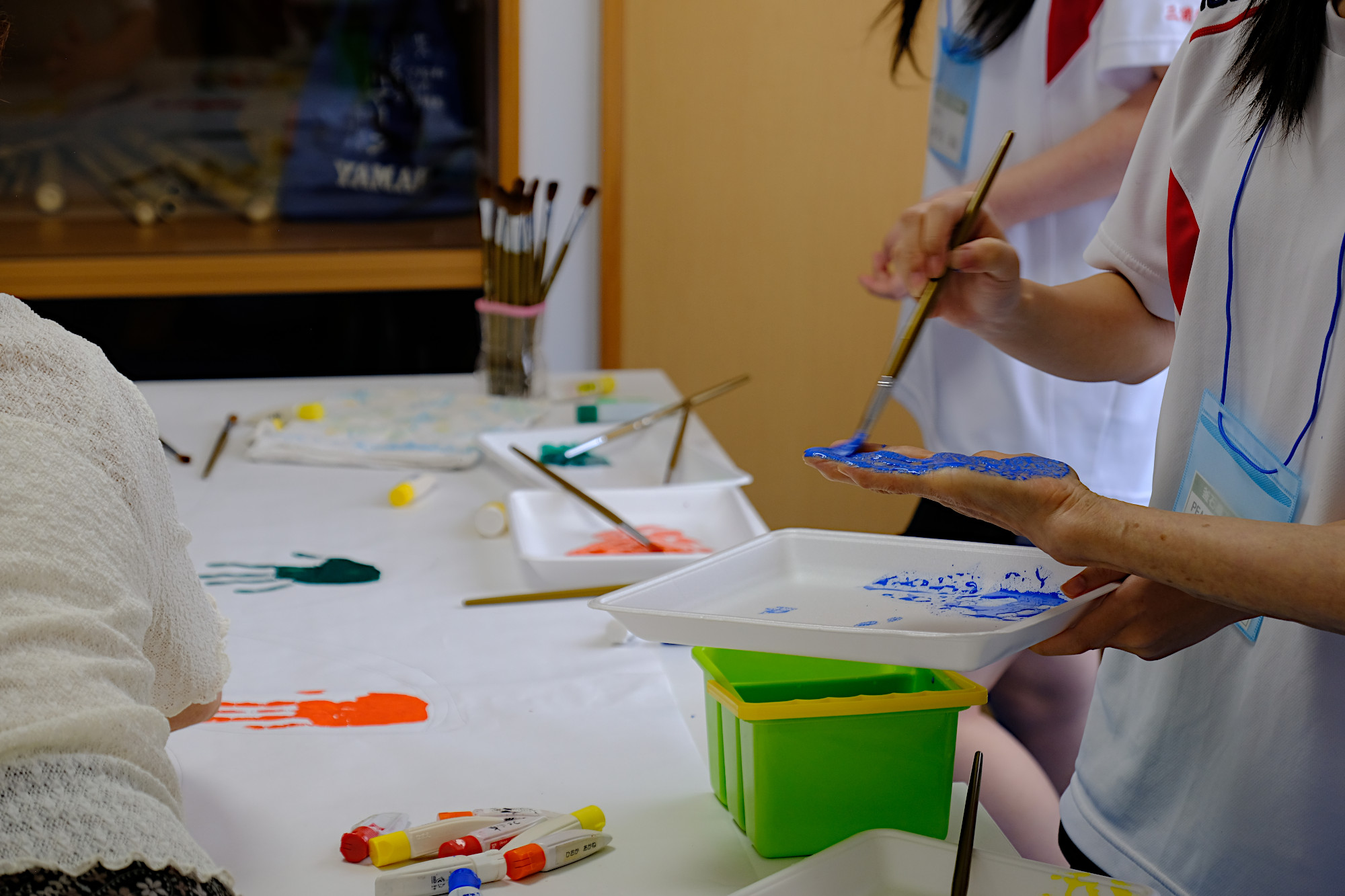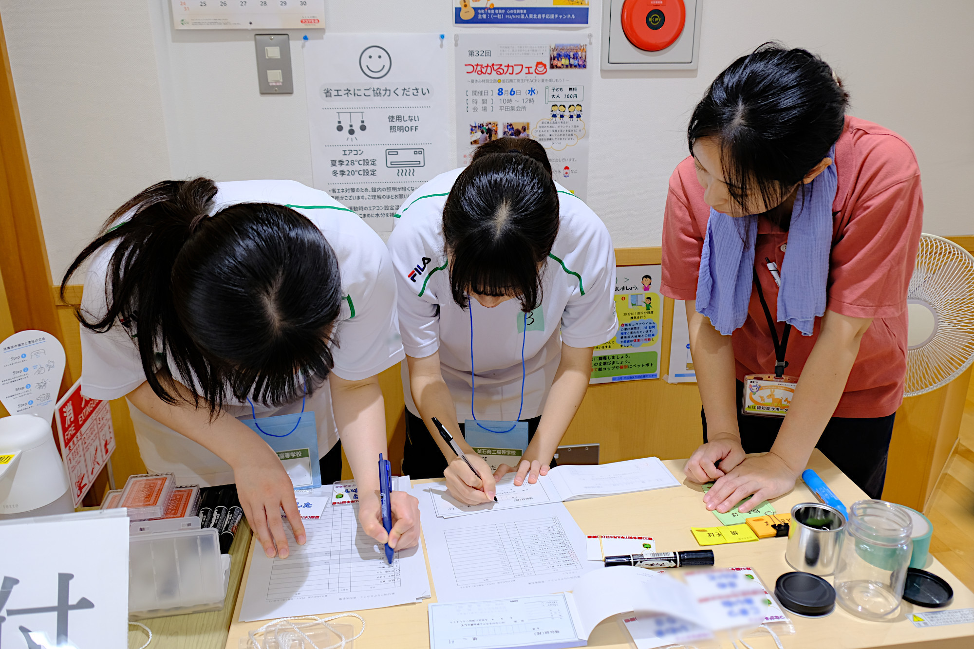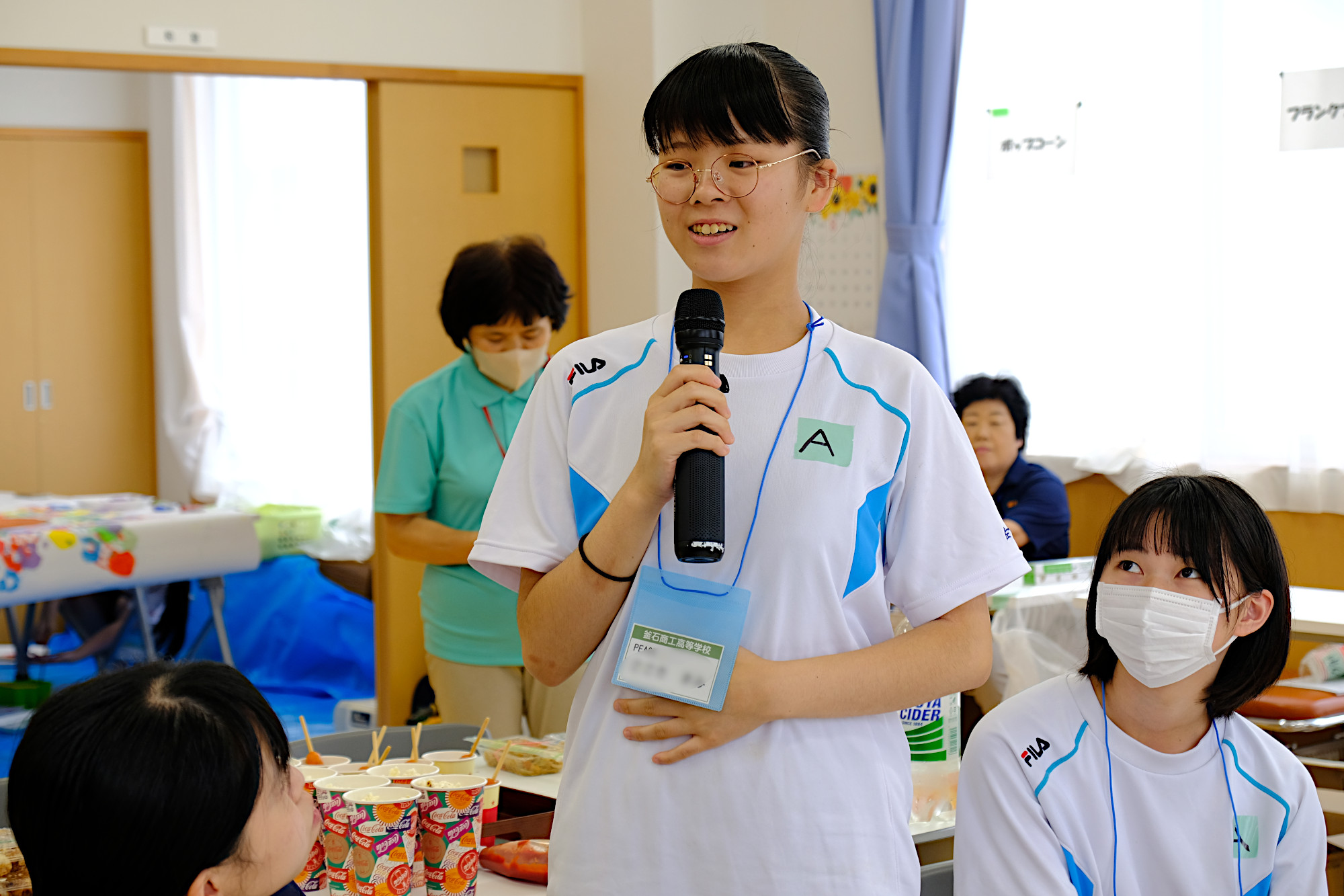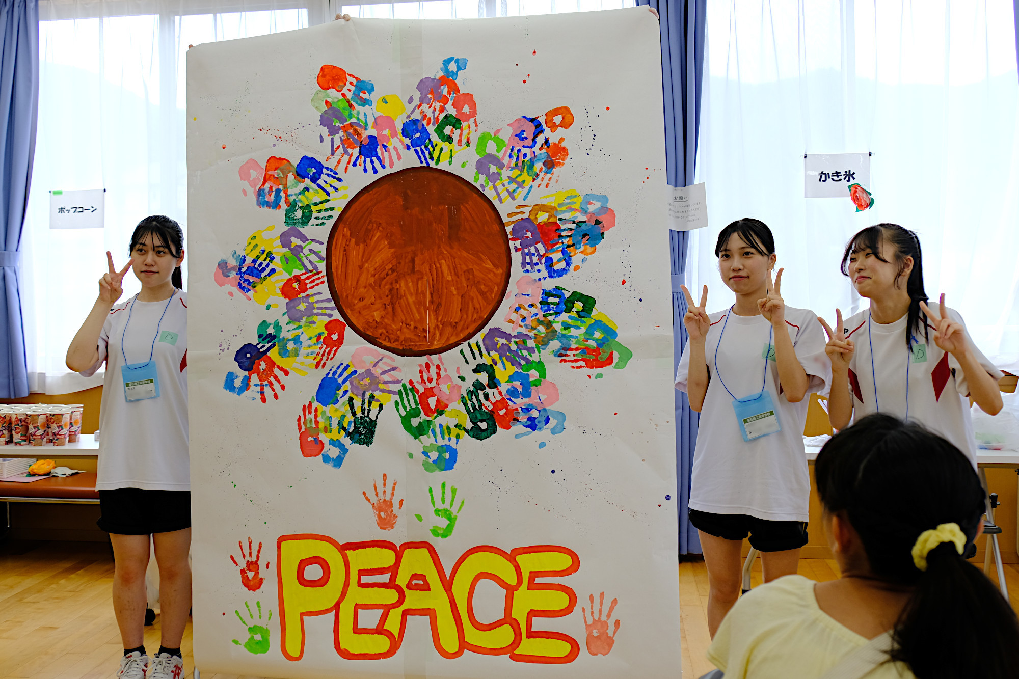 釜石商工高等学校の有志「PEACE 〜 笑顔と笑いを届ける」の皆さんに全面的なサポートをいただき、カフェタイム、アート制作で楽しい時間を過ごしました。