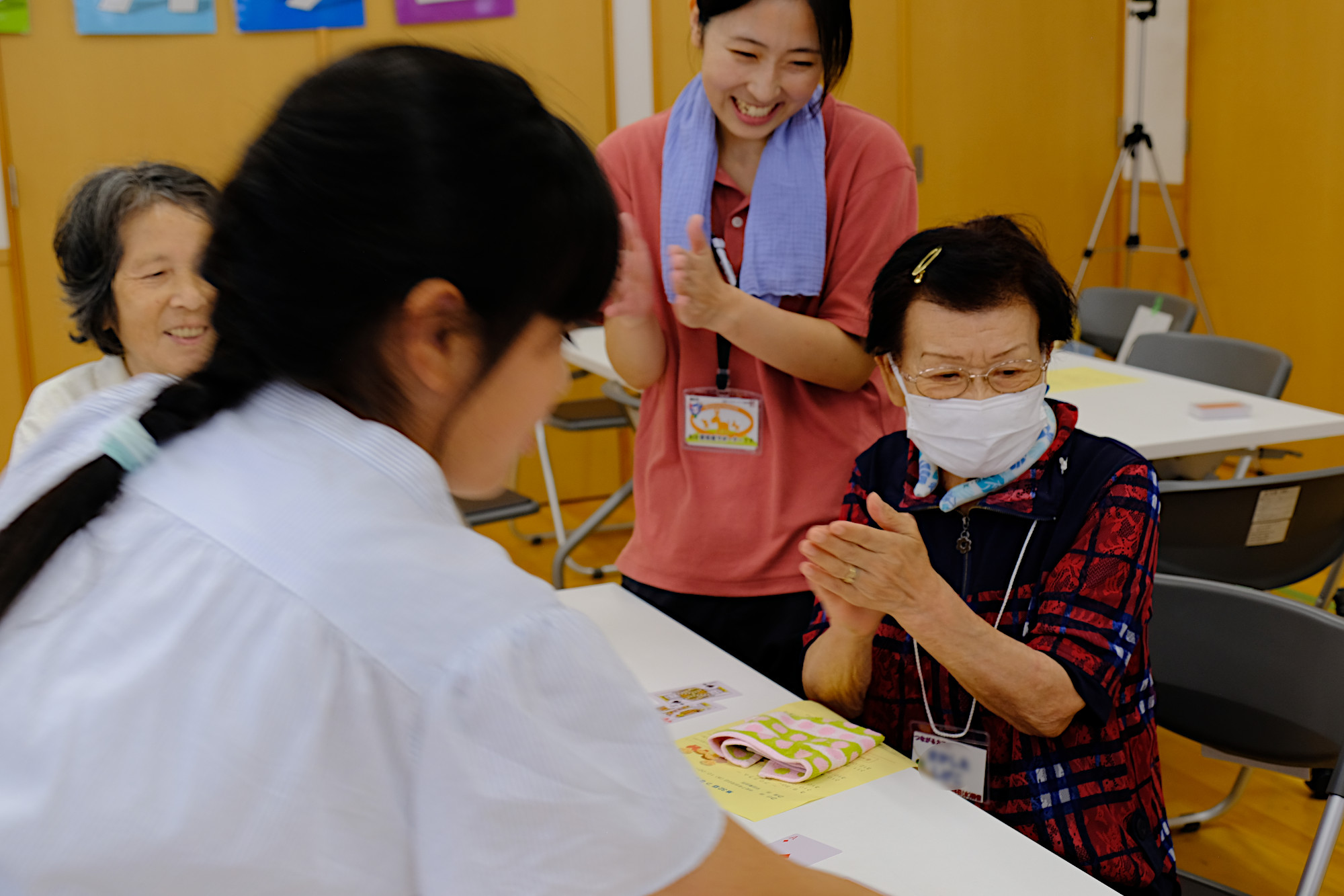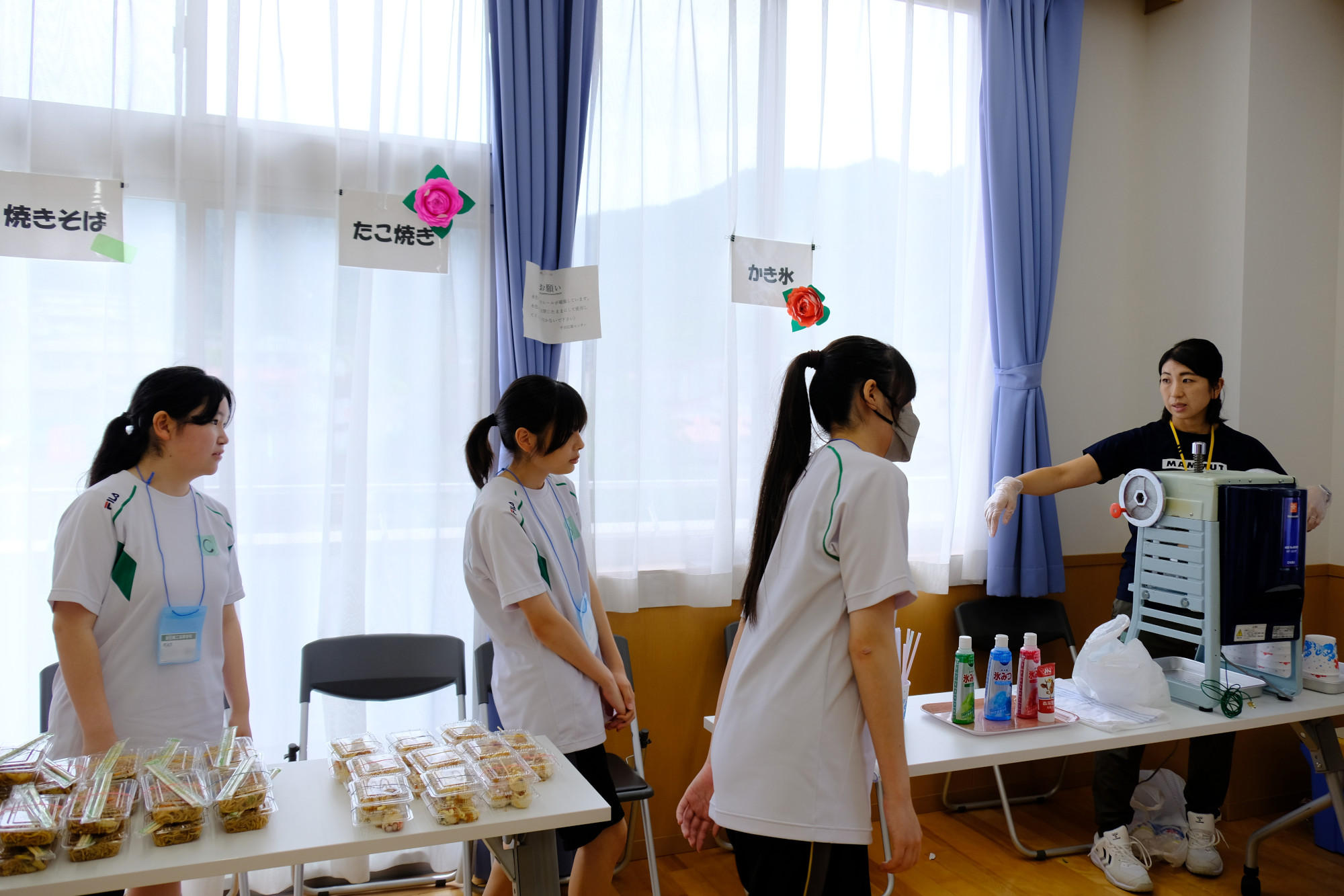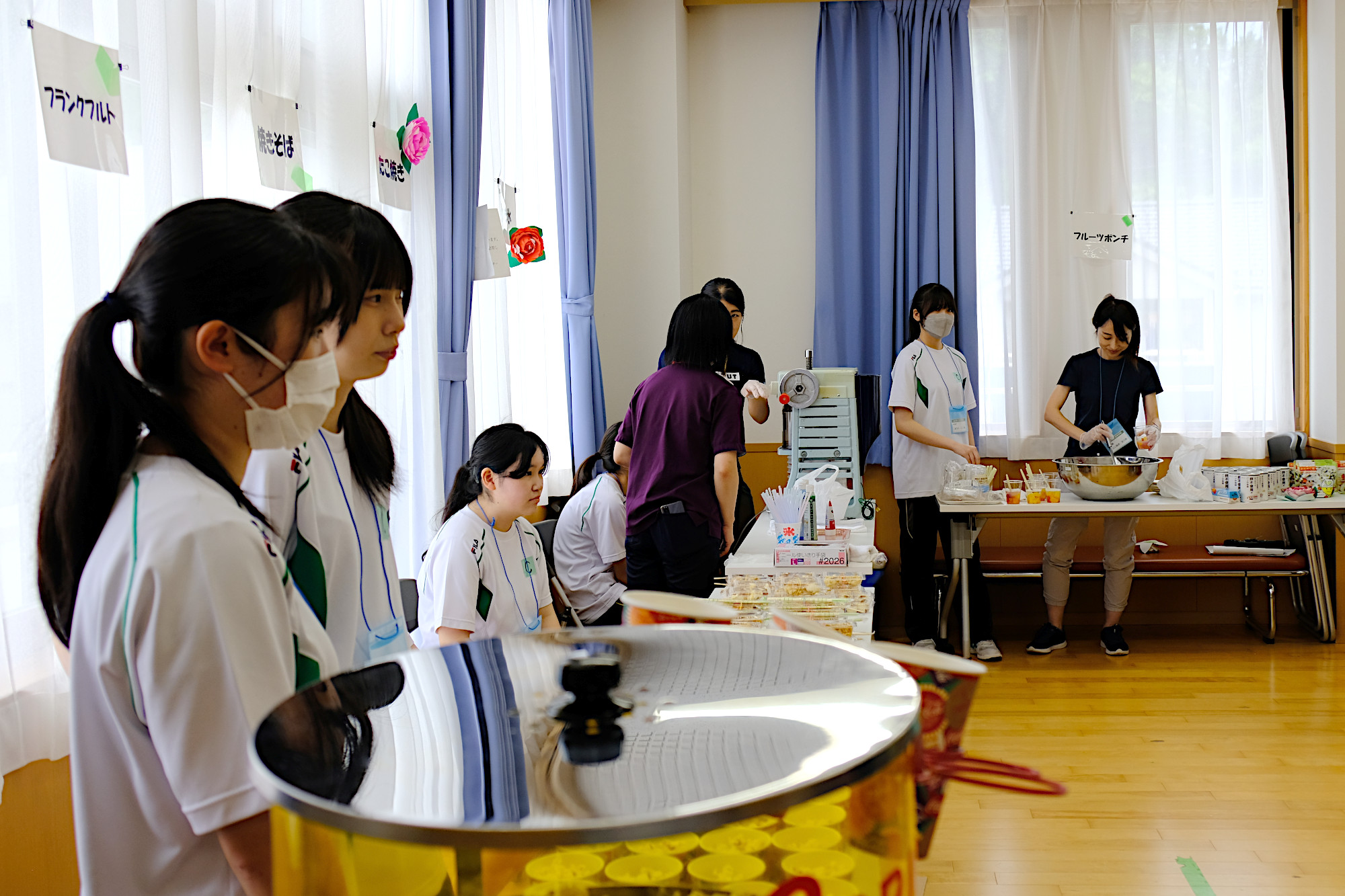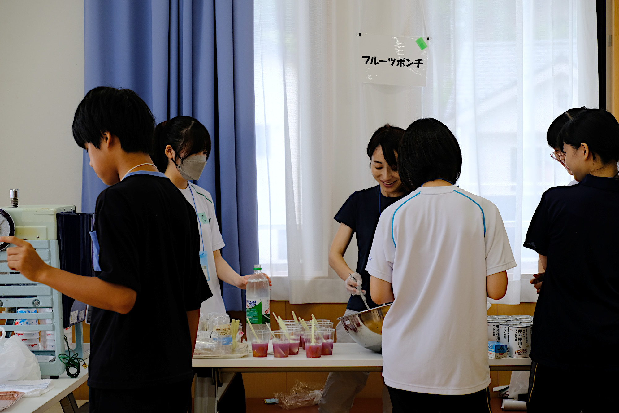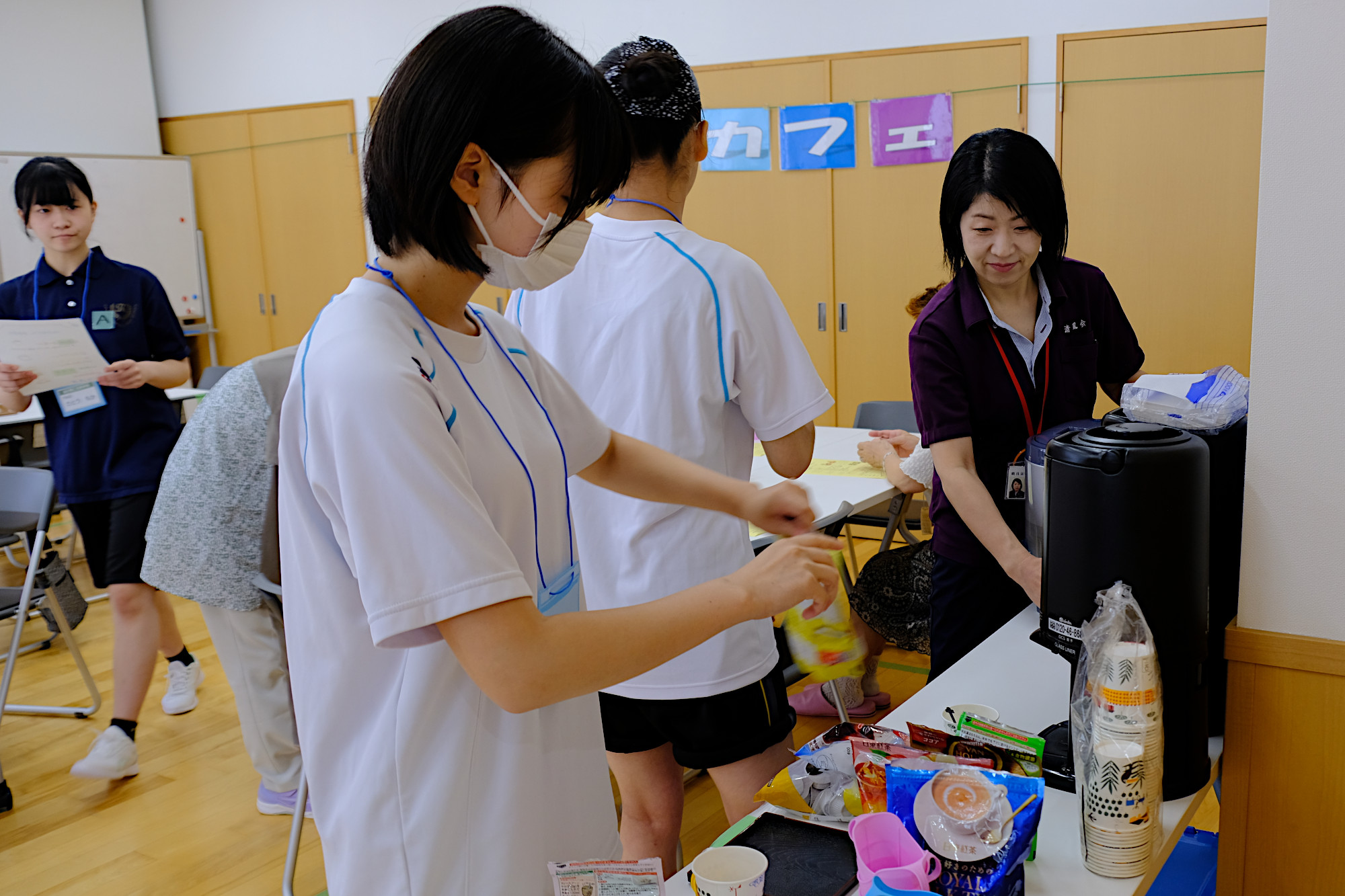 釜石商工高等学校の有志「PEACE 〜 笑顔と笑いを届ける」の皆さんに全面的なサポートをいただき、カフェタイム、アート制作で楽しい時間を過ごしました。