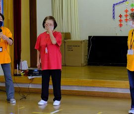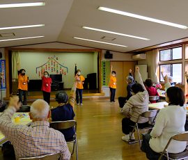 ※プログラム変更のため、平田小学校4年生児童との交流に代り10月28日釜石PITに於いて行われた大平中学3年生による2025年認知症劇のビデオが上映されました。