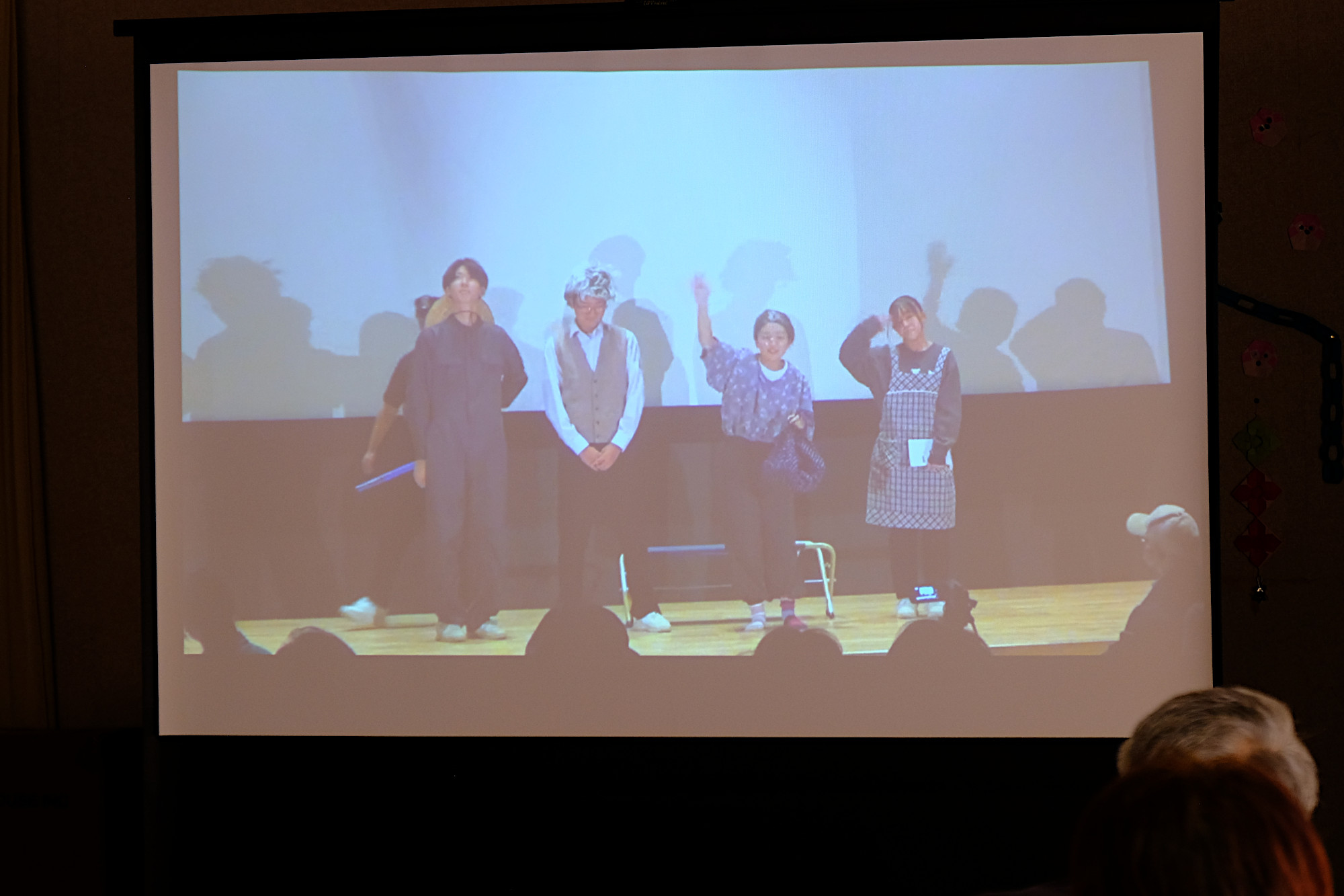 ※プログラム変更のため、平田小学校4年生児童との交流に代り10月28日釜石PITに於いて行われた大平中学3年生による2025年認知症劇のビデオが上映されました。