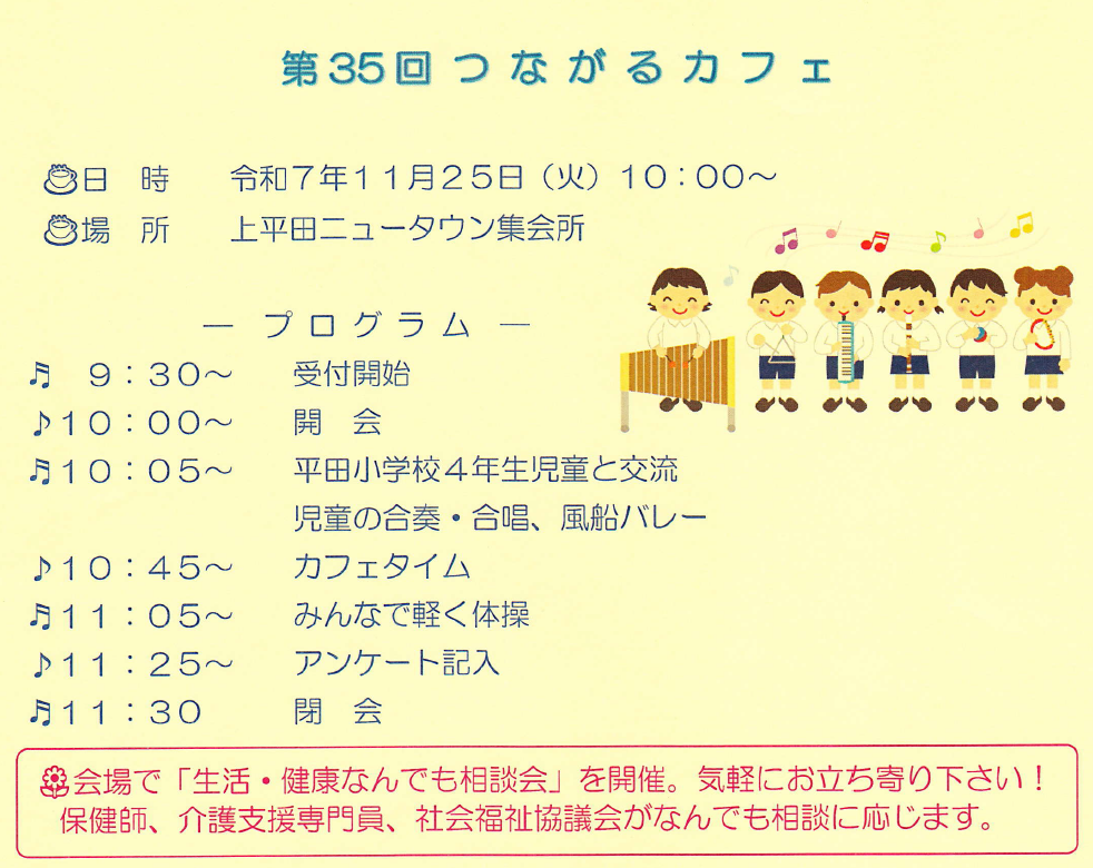 2025年11月25日(火)、上平田ニュータウン集会場にて「第35回つながるカフェ」が開催されました。